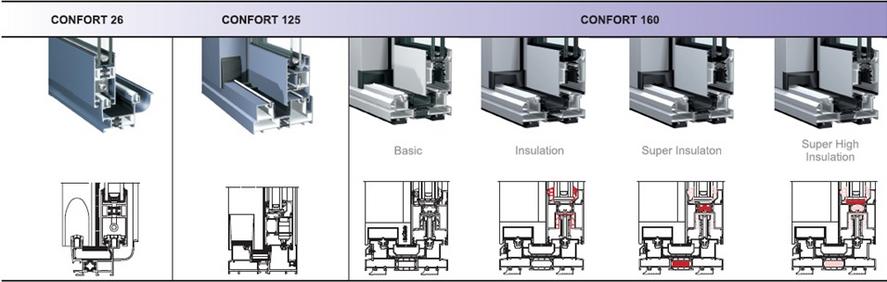 Pencere ve kapı uygulamalarında 1,2,3 ve 4 raylı kasa ve 8 kanatlı sürme çözümüne olanak sağlayan ısı yalıtımsız sistemdir.